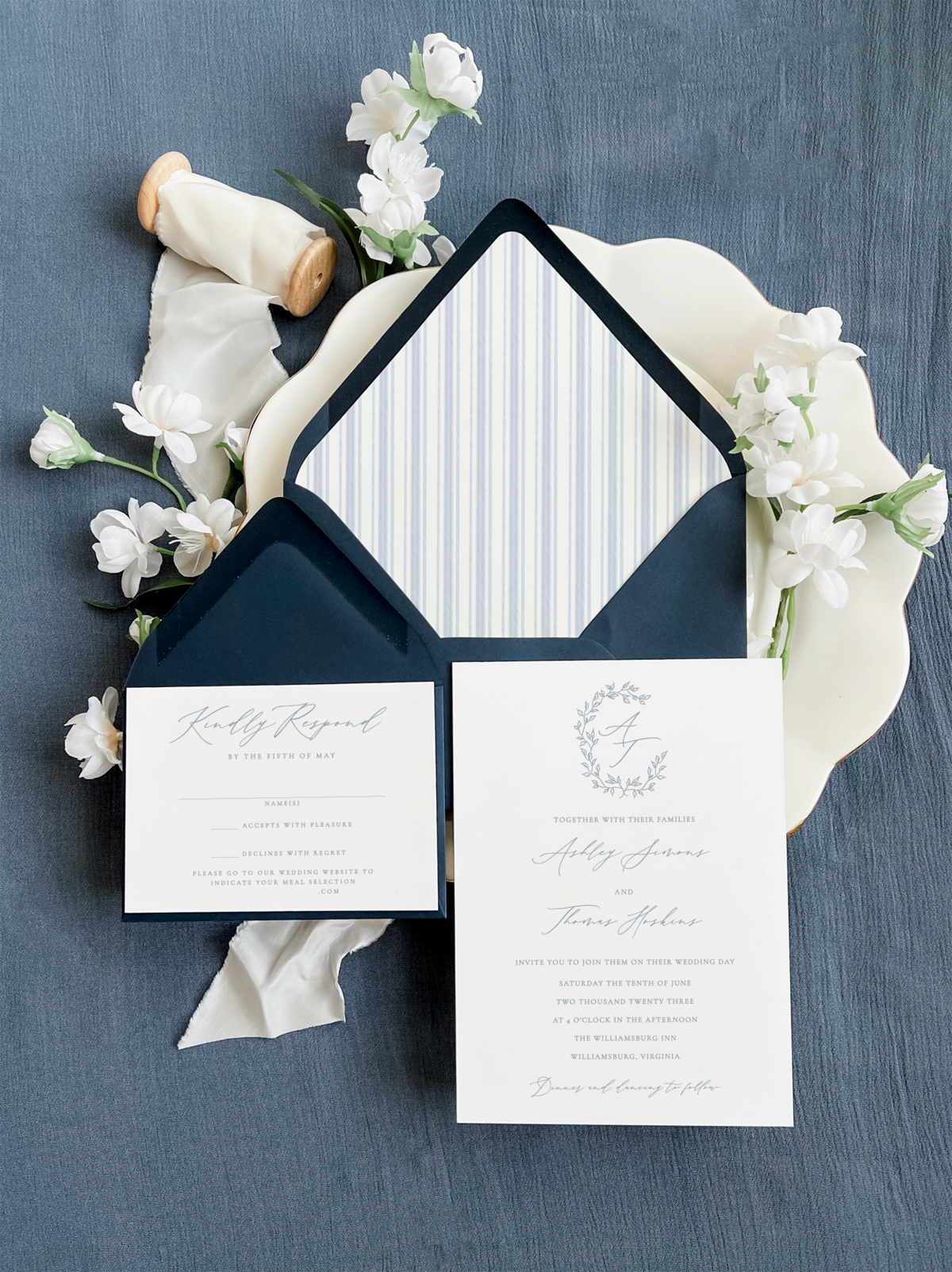 With a heart for love stories and an eye for timeless design, I create wedding stationery that feels both elevated and effortlessly personal. Whether you're drawn to the refinement of a fully custom suite or the ease of a semi-custom design, each piece is rooted in clean lines, classic details, and meaningful touches that reflect who you are as a couple.