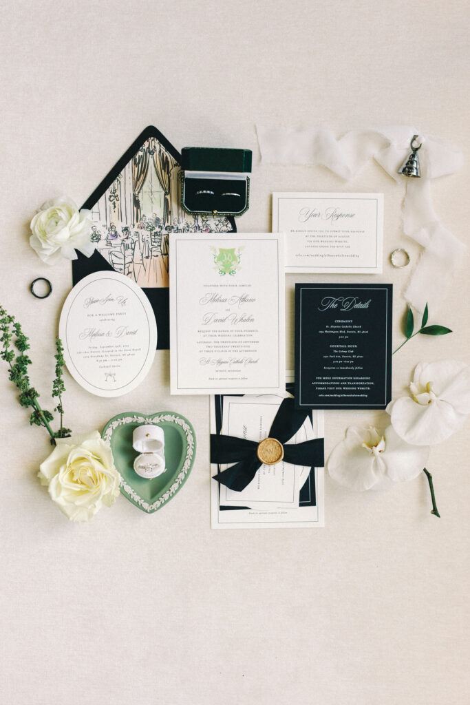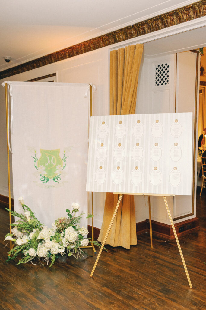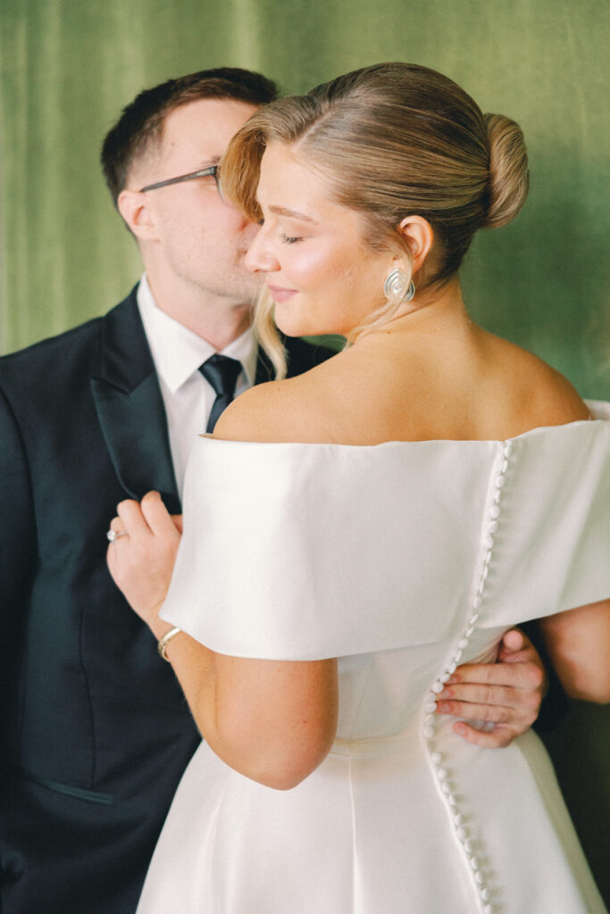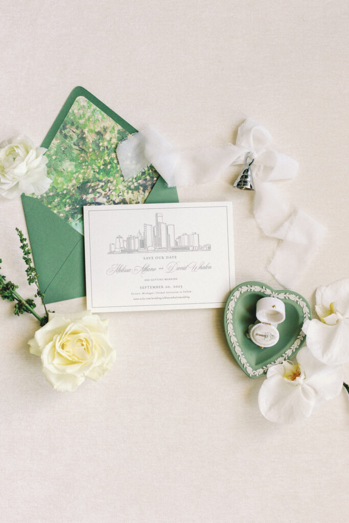 Photographer: Hayley Moore Photography, Ceremony Venue: St. Aloysius Detroit, Reception Venue, Catering, & Cake: The Colony Club Detroit, Planner: K. Adam Events, Florals: The Flower Alley, Dress: Becker’s Bridal, Grooms Tux: The Black Tux, Shoes: Badgley Mischka, Jewelry & Accessories: Nicola Bathie Jewelry, Rings: Jacob Matthew Jewelers, Invitations & Calligraphy: Ainsley & Elaine Paper, Makeup Artist: Ash Beauty, Hair Stylists: Isabella O’Neill Beauty + Kaelee Watts, Entertainment: Ben Sharkey + The Elysium Experience + Sax Appeal Music, Videography: Black Tie White Dress Productions, Desserts: For The Love Of Sugar, Rentals: Modernly Events + LUXE Event Linens, Transportation: Golden Limousine, Live Wedding Painter: Createtingz – Nicole Cunningham
